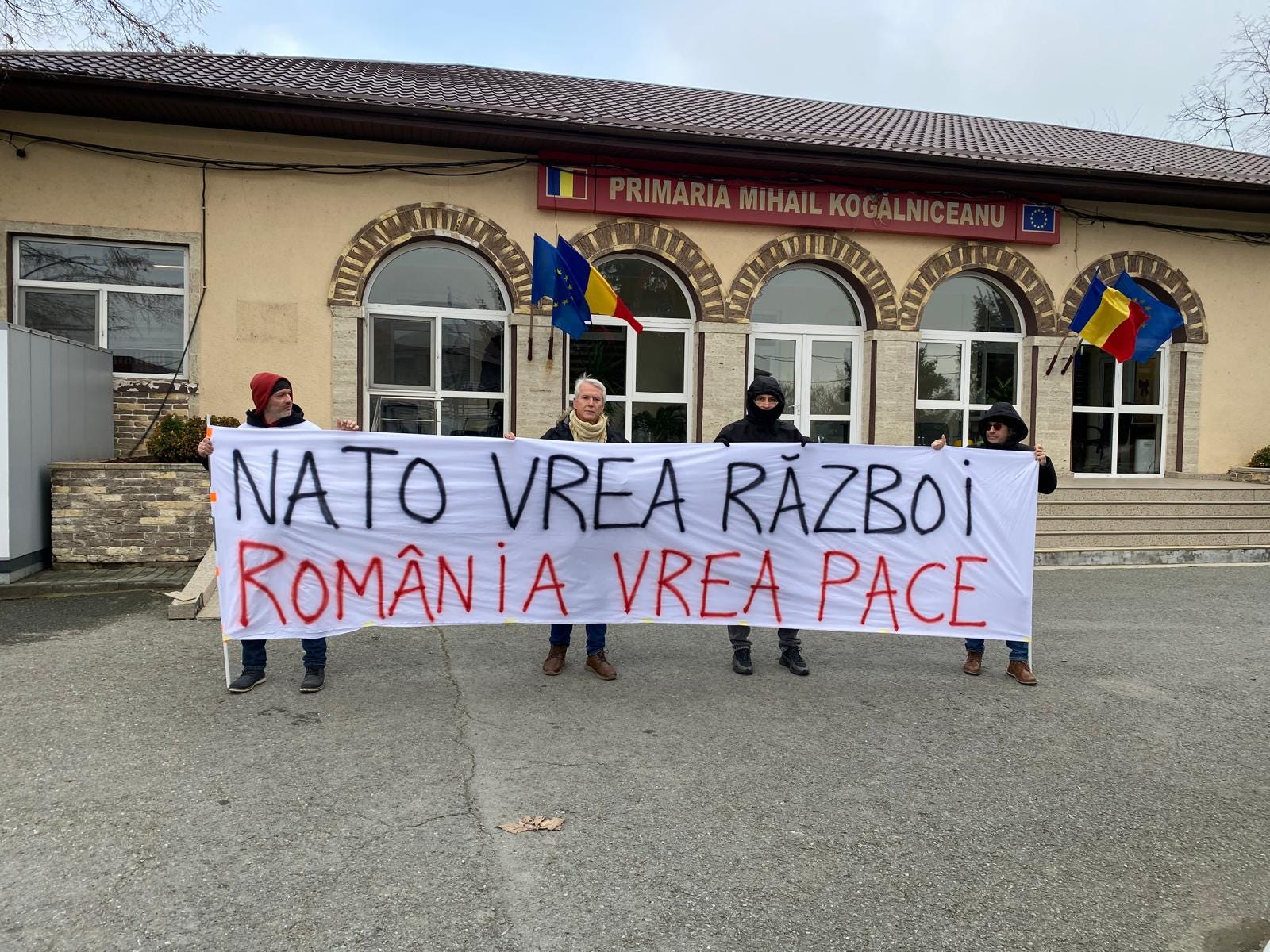Astăzi, 18 decembrie 2025, membri ai capitolului românesc al organizației pacifiste internaționale World BEYOND War a organizat un protest la Kogălniceanu, localitatea care adăpostește o importantă bază militară NATO.